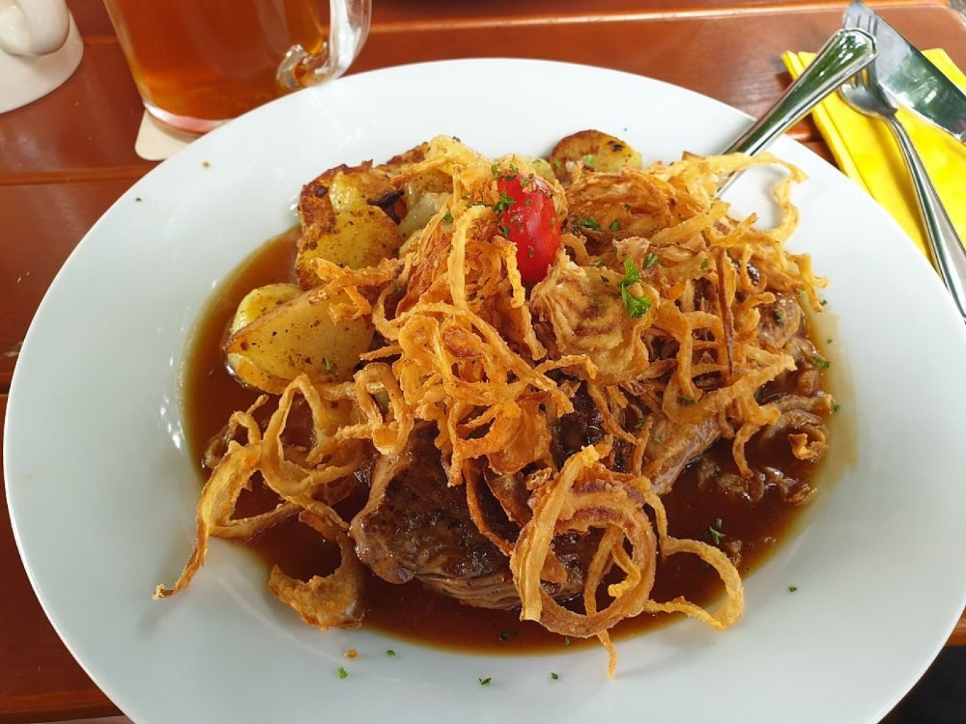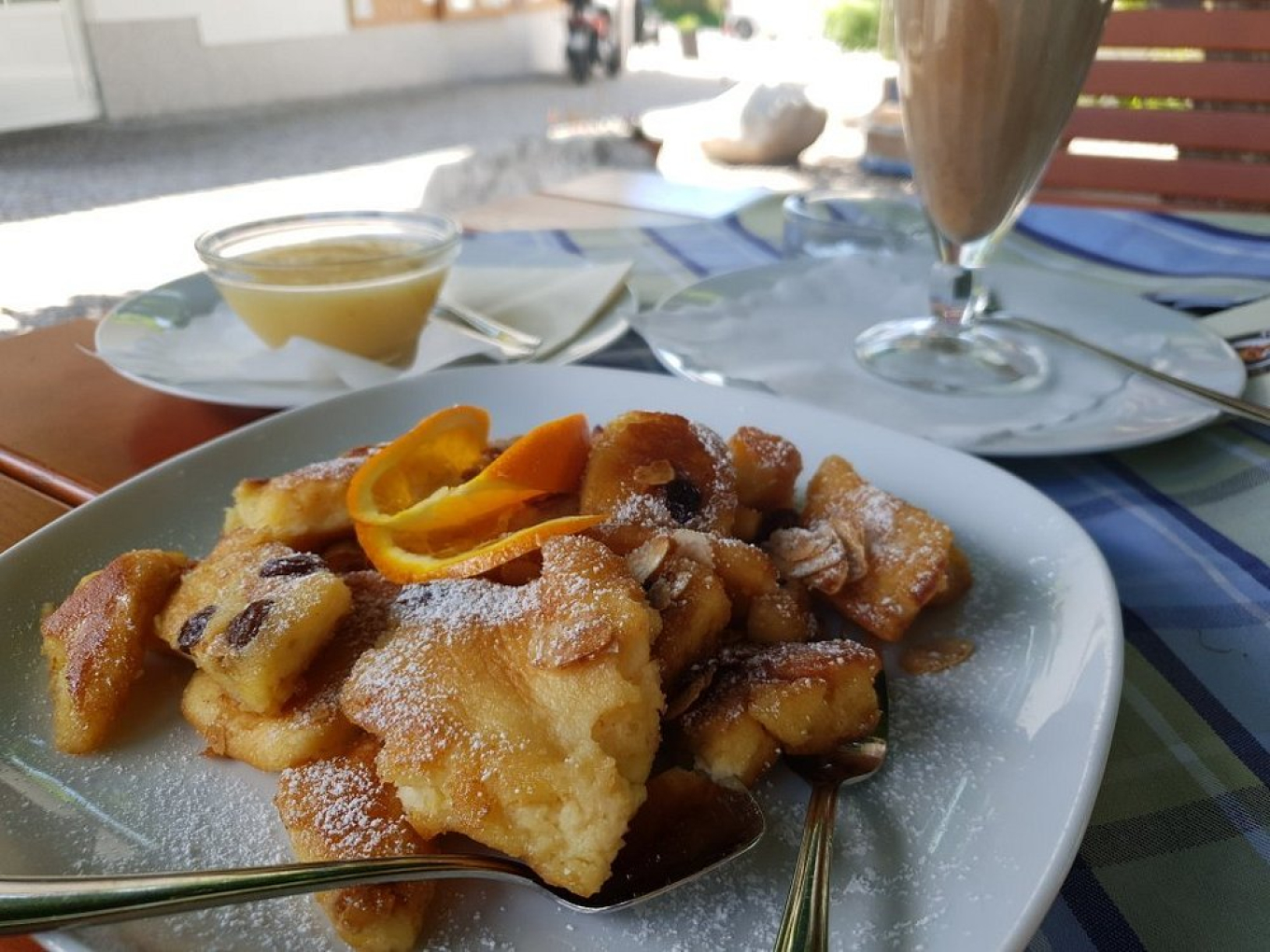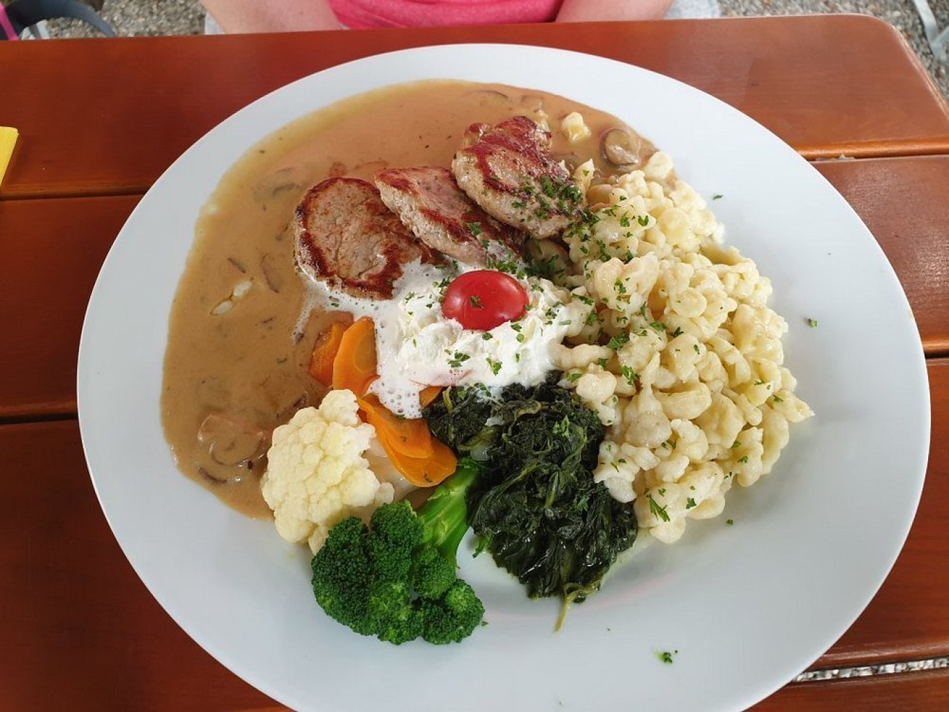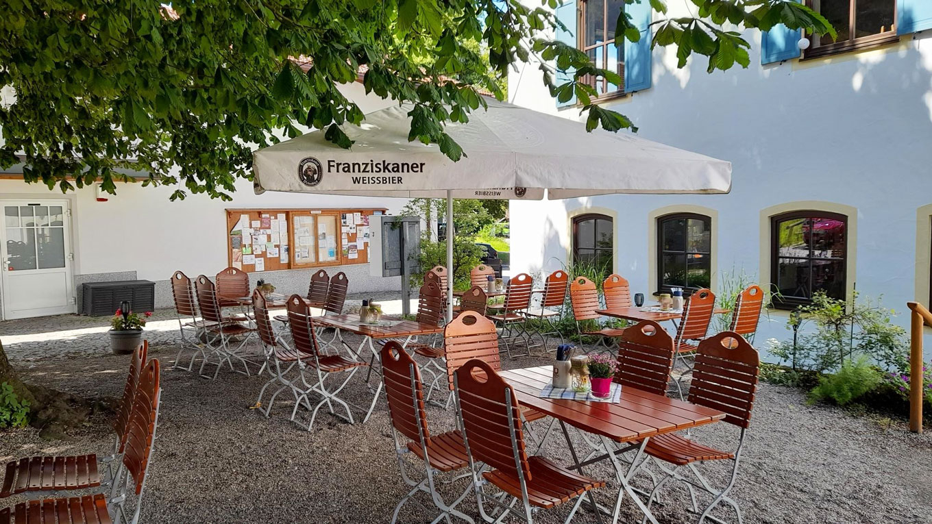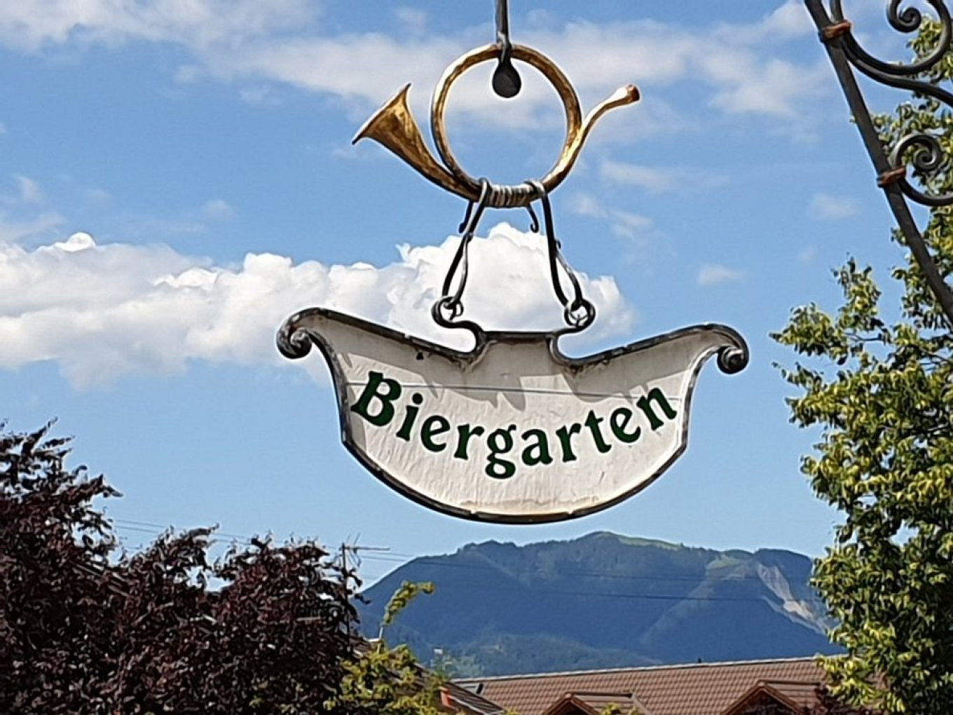 Im Sommer verbringen Sie angenehme Stunden im Biergarten unter den alten Kastanienbäumen mit Blick auf den Dorfbrunnen und die Hausberge. Frisch gezapfte Fassbiere wie Spaten Hell, Franziskaner Weißbier oder Kellerbier runden das Angebot ab.